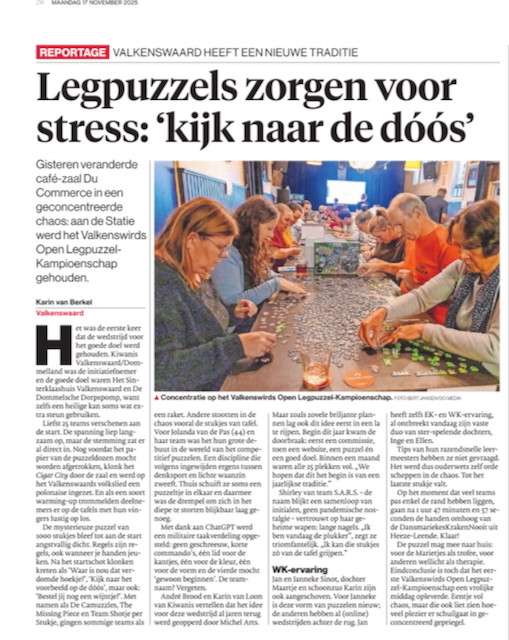 Op 16 november 2025 organiseerden wij voor de eerste keer het Valkenswaards Legpuzzelkampioenschap. Een gezellige én competitieve middag voor puzzelliefhebbers van alle leeftijden.